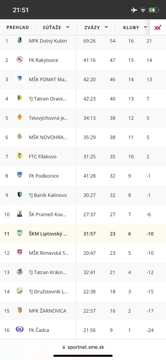 8試合ぶりの無得点と攻撃も沈黙、守備も3試合ぶりに失点して点差どうりの完敗。4連勝とはならず今節試合をしたMSK SOBOTAに勝ち点で並ばれ残留争いから一歩抜け出すことができませんでした。